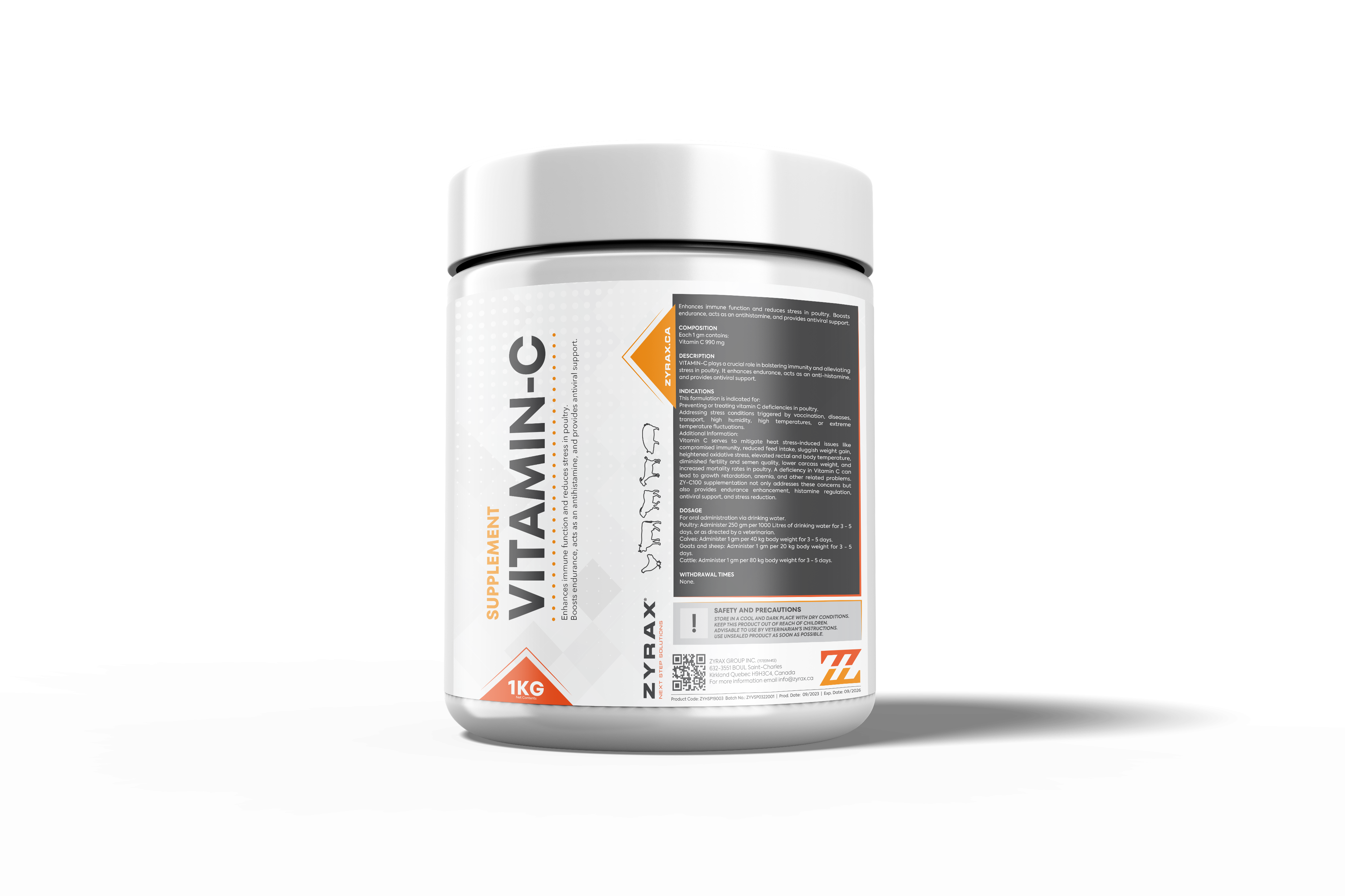 VITAMIN-C plays a crucial role in bolstering immunity and alleviating stress in poultry. It enhances endurance,